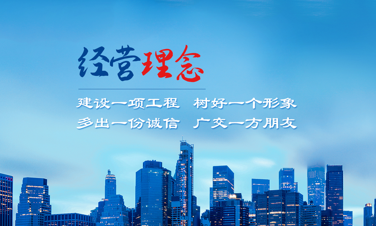 公司以建造合格建筑產(chǎn)品、助力國家建設為使命,以構(gòu)建幸福企業(yè)為愿景。公司深知助力國家建設為使命所擔負的責任,故以“如履薄冰、如臨深淵、高調(diào)精細做事、低調(diào)謙虛做人”為工作理念,建立了完善的管理制度和質(zhì)量保障體系,以人為本,構(gòu)建和諧環(huán)境。公司牢固樹立安全意識、文明意識、質(zhì)量意識、環(huán)境意識和精品意識。在公司質(zhì)量管理過程中貫徹“雙百”方針:即工程合格率100%,客戶滿意率100%。以“建設一項工程,樹好一個形象,多出一份誠信,廣交一方朋友”為公司經(jīng)營理念。